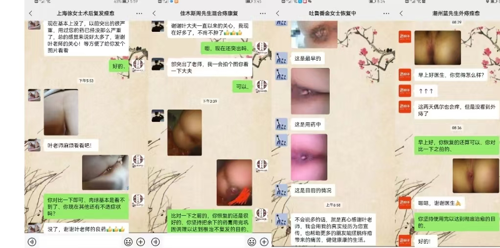因为之前我用过很多的中药、西药、以及各种膏药偏方,有内服外用、有推入涂抹,并且做过多次手术后反复,最终都没有达到根治效果,这次通过战友的强力推荐下,我添加了老师微信,没想到这位老师非常出名,很多三甲医院的临床医生,都是根据他的指导意见,并且非常专业负责,把我情况详细了解清楚之后,给我分析了草本膏剂根治痔疮的方法与方案!
